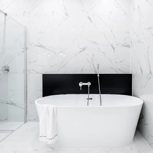 Non-porous, grout-free, and antimicrobial slabs create a cleaner, healthier shower or tub that resists mold and mildew for life.